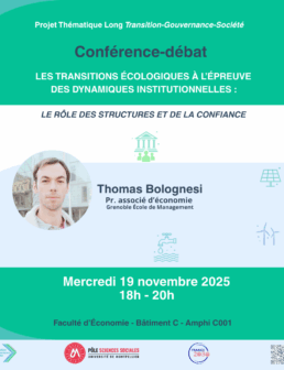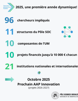 Le Projet Thématique Long Transition – Gouvernance – Société (PTL TGS) a pour objectif de favoriser les recherches entre les laboratoires rattachés au Pôle Sciences Sociales (SOC) au sein de l’Université de Montpellier.
